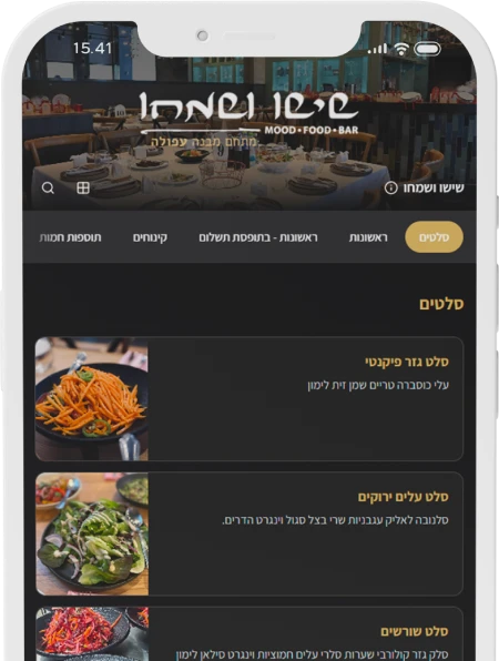 תפריט דיגיטלי מהיר במיוחד, מעוצב בקפידה וחווייתי ללקוחות.